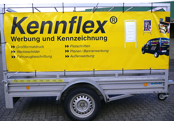 Mit den Werbebannern und Planen von Kennflex® -Werbebanner & Planen erhalten Sie eine sehr kostengünstige Möglichkeit, um Ihren Werbeauftritt langfristig und effektiv durchzuführen. Unsere Banner und Planen fertigen wir nach Ihren Vorgaben in sämtlichen Größen und für jeden Anwendungsfall im Innen- und Außenbereich: